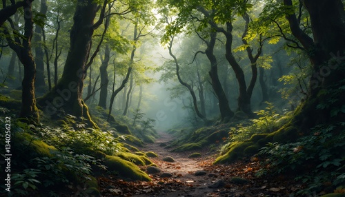 © avissarahmanita, Naklejka premium Sunlit Path Through an Enchanted Forest: A Digital Painting