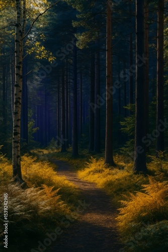 © dwphtra, Fototapeta premium Sunlit Path Through an Enchanting Forest