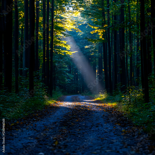 Fototapeta premium Sunlit Path Through Autumn Forest