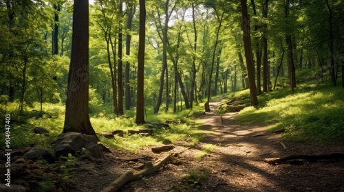 © Egriva, Fototapeta premium Sunlit Path Through Forest