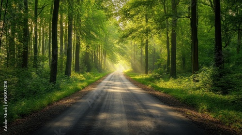 © Nas, Fototapeta premium Sunlit Path Through Lush Forest