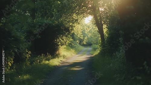© irawan, Obraz premium Sunlit Path Through Lush Green Forest Canopy