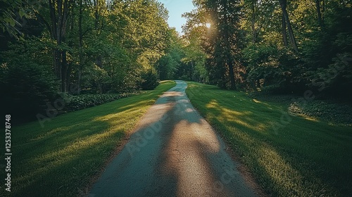 Obraz premium Sunlit path through lush green park, tranquil scene
