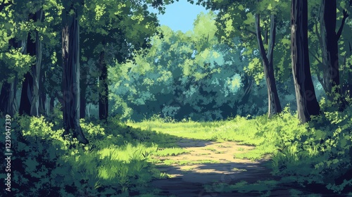 © HeriAfrilianto, Obraz premium Sunlit Path Through Lush Green Summer Forest