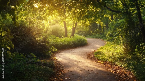 Fototapeta premium Sunlit Path Through Lush Greenery: A Serene Forest Walk