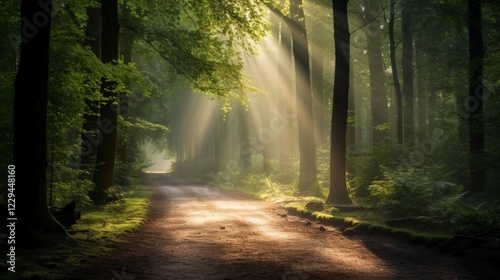 © Ardezart, Obraz premium Sunlit Path Through the Forest