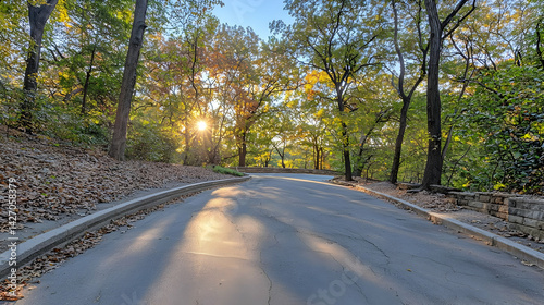 Fototapeta premium Sunlit Pathway Through Autumn Woods