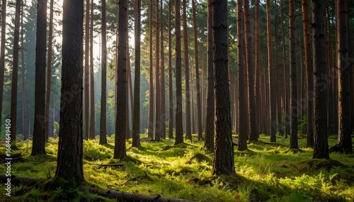 © Eka, Obraz premium Sunlit pine forest, mossy ground