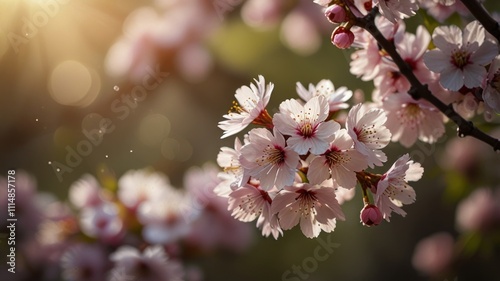 © ikk.gtg, Obraz premium Sunlit pink cherry blossoms in spring.