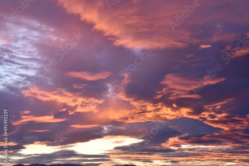 Fototapeta premium Sunlit pink clouds, Sunset sky with pink clouds, spectacular sunset with colorful clouds
