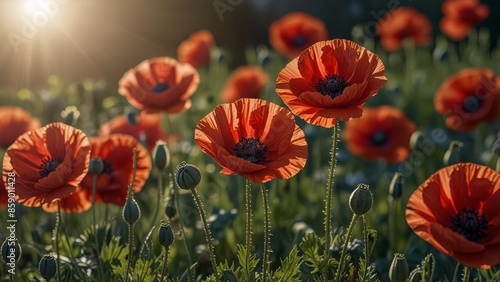 © Василь Тігай, Fototapeta premium Sunlit Poppy Field Bloom