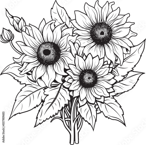© ROHIT, Fototapeta premium Sunlit Radiance Bouquet Logo Design Sunflower Delight Vector Graphic Icon