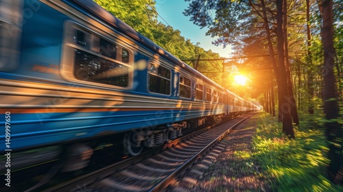 Fototapeta premium Sunlit Rail Journey Through Forest of excellence in splendor beyond compare with grace in style