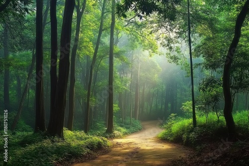 Obraz premium Sunlit Redwood Path