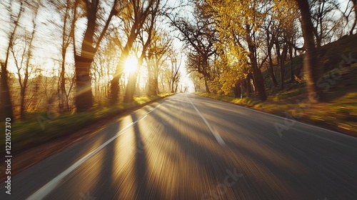© boler, Fototapeta premium Sunlit Road Through Autumn Trees at Sunset