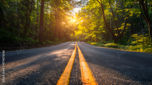 © Yiss Design, Obraz premium Sunlit Road through Forest