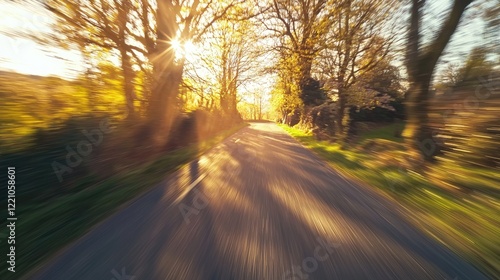© boler, Fototapeta premium Sunlit Road Through Trees A Scenic Drive