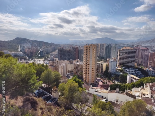 © Vladimir, Obraz premium sunlit rooftops and distant horizon, urban hillside overlooking city skyline with mountain backdrop