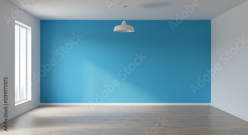 © VuongThien, Obraz premium Sunlit Room with Teal Accent Wall: 3D Interior Render AI Generated
