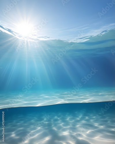 Obraz premium "Sunlit Serenity Beneath the Waves – Tranquil Underwater Coral Reef Scene"