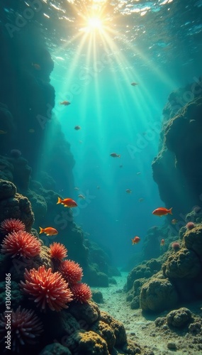 Fototapeta premium Sunlit shallows, vibrant fish school creating texture, tropical, texture,...