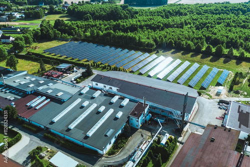 Obraz premium Sunlit solar panel field powering rural infrastructure