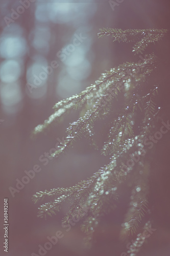 Obraz premium Sunlit spruce branches.