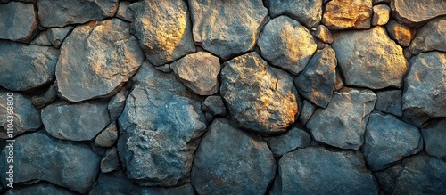 © Almahyra, Obraz premium Sunlit stone wall texture background.