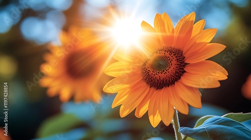 Fototapeta premium Sunlit Sunflower Basking In Golden Sunlight