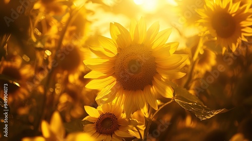© Idaya, Fototapeta premium Sunlit Sunflower Field