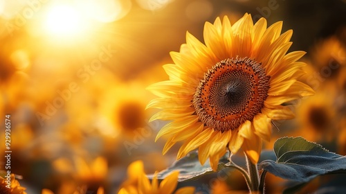 Fototapeta premium Sunlit Sunflower in a Field of Golden Blooms