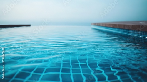© ELY, Obraz premium Sunlit Swimming Pool with Sparkling Water and Lounge Chairs in Background