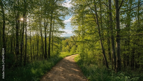 Fototapeta premium Sunlit Trail Winding Through a Springtime Woodland