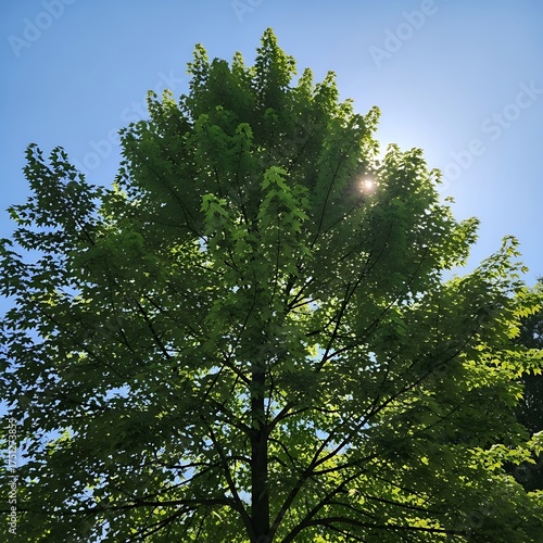 Fototapeta premium Sunlit Tree Canopy - A Verdant Display Against the Sky.