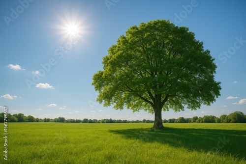 © Seyyar, Obraz premium Sunlit Tree in a Bright Landscape