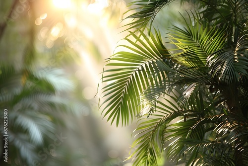 © D, Fototapeta premium Sunlit Tropical Foliage Morning Light - Nature, Photography, Decor, Wallpaper Background Design