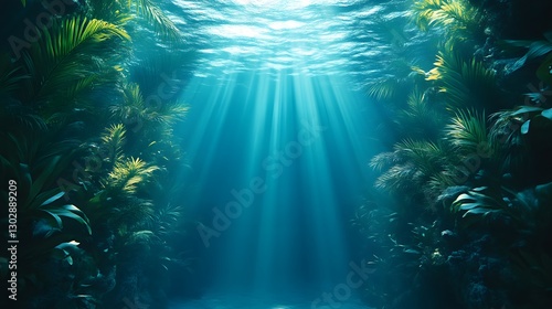 © PANGERANDESIGN, Fototapeta premium Sunlit Underwater Tropical Canyon