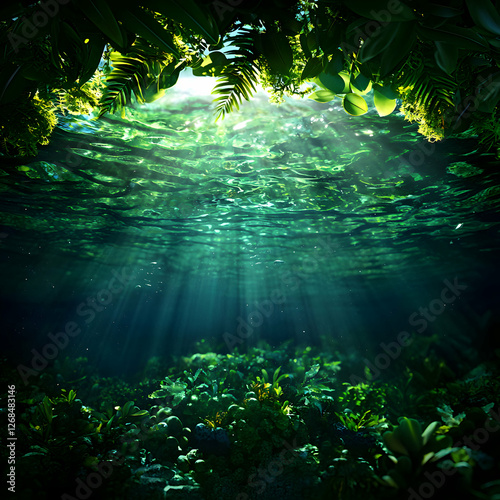 Fototapeta premium Sunlit Underwater Tropical Jungle Scene