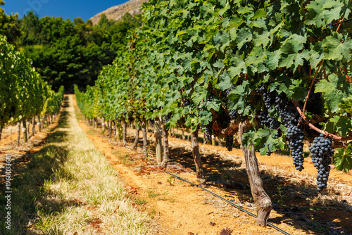 © evgeeenius, Fototapeta premium Sunlit vineyard in South Africa