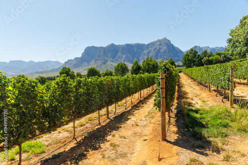 Naklejka premium Sunlit vineyard rows