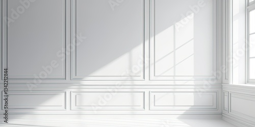 Fototapeta premium Sunlit White Room Corner, Paneling, Window, Interior Design Mockup