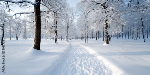 © AltisArt, Obraz premium Sunlit Winter Path Through Snowy Forest
