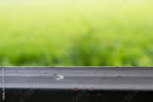 Fototapeta premium Sunny abstract green nature background with table, defocused