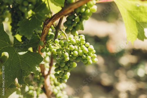 Obraz premium Sunny agriculture./ Grapes on vine in vineyard, south Poland