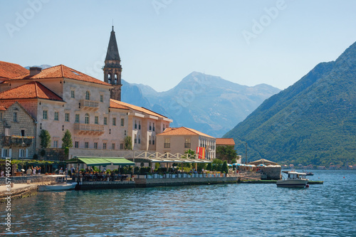 Naklejka premium Sunny autumn day in ancient town of Perast. Montenegro, Kotor Bay