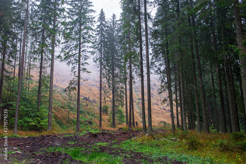 © Martins Vanags, Fototapeta premium sunny autumn forest with large tree trunks