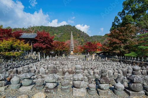 Obraz premium Sunny autumn landscape at Adashino Nenbutsu Ji