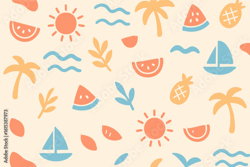 © Fadil Rambey, Obraz premium Sunny Beach Day Doodles and Icons