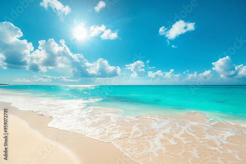 Obraz premium Sunny Beach with Turquoise Waters and Blue Sky