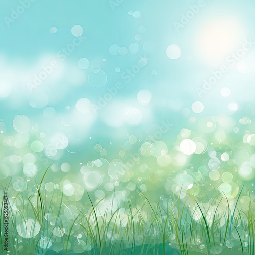 Fototapeta premium Sunny bokeh meadow with grass, sky, and diffused light